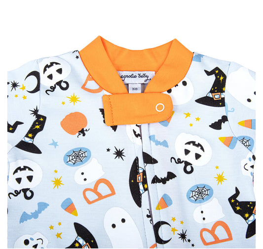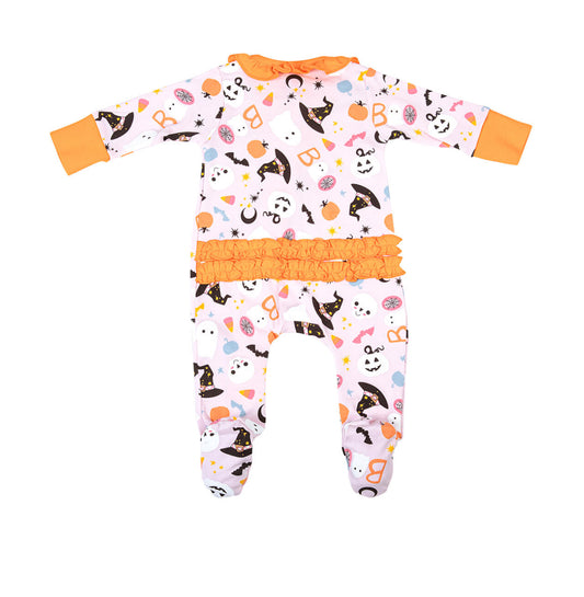 A Little Bit Batty Printed Ruffle Zipper Footie