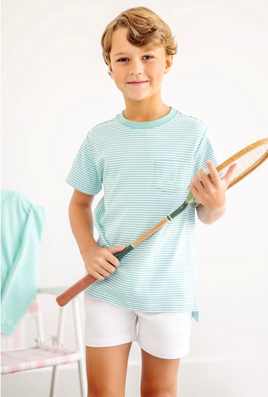 Carter Crewneck- Turks Teal Stripe/Turks Teal