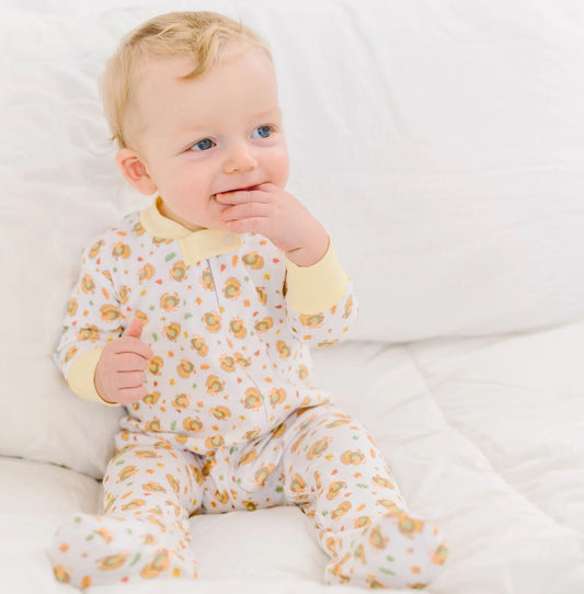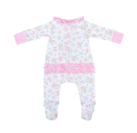 Pumpkin Blush Melon Printed Ruffle Zipper Footie