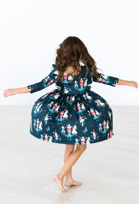 Christmas Ballet 3/4 Sleeve Ruffle Twirl Dress