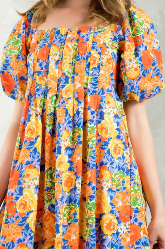 Rose Print Puff Sleeve Dress