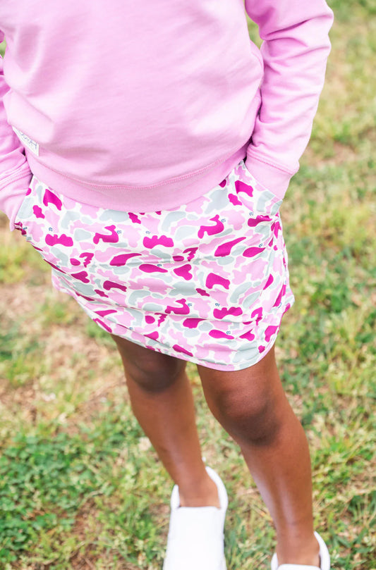 GIRLS CAROLINA CATCH SKORT IN ORCHID PURPLE CAMO