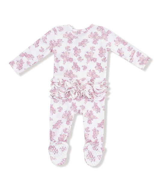 Sweet Rose Calico- 2 Way Zipper Ruffle Back Footie