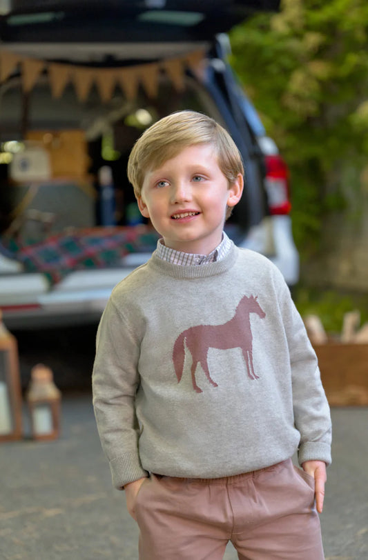 Isaac’s Intarsia Sweater-Grantley Gray (Heathered)/Horse