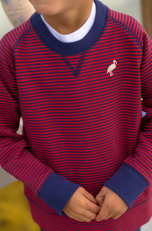Cassidy Comfy Crewneck Boys- Richmond Red and Nantucket Navy Stripe/Nantucket Navy