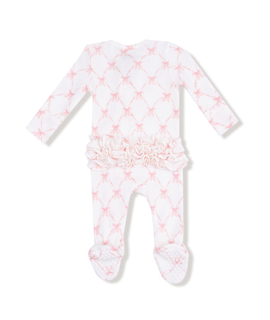 Ribbon Bow Trellis- 2 Way Ruffle Zipper Footie