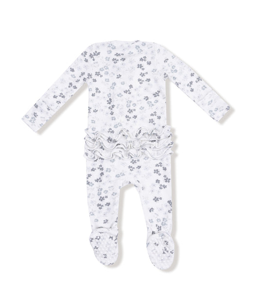 Caroline’s Calico-2 Way Zipper Ruffle Back Footie- white/light blue