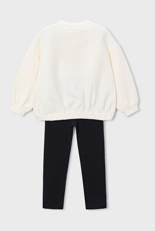 Girl Printed Sweatshirt and Leggings Set- Black