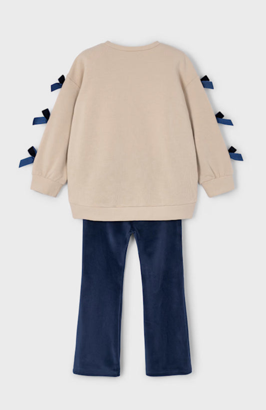Girl Bow Sweatshirt and Leggings Set- Navy