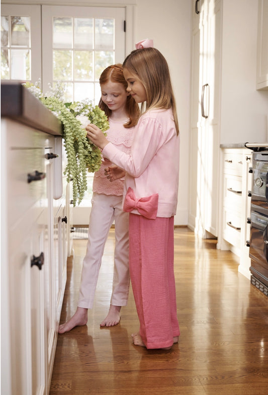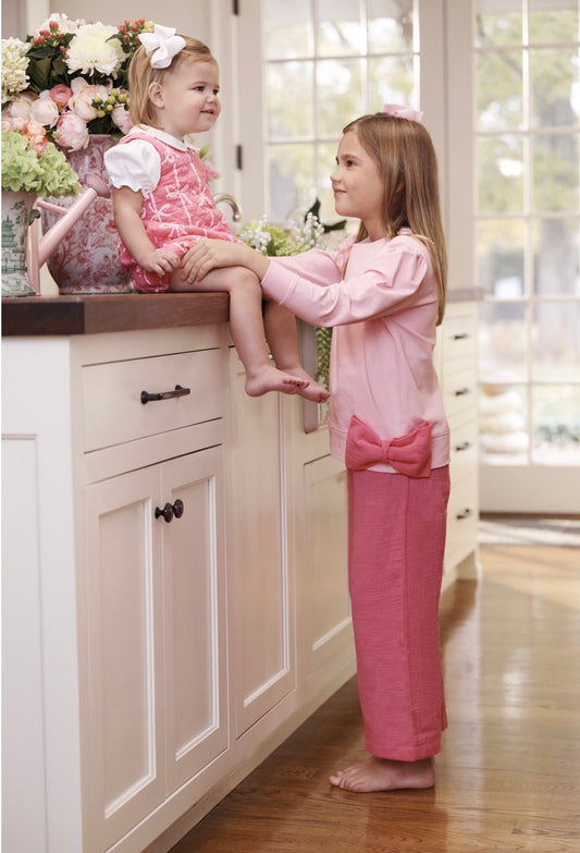 Cassidy Comfy Crewneck-Bow-Palm Beach Pink/Romany Rose