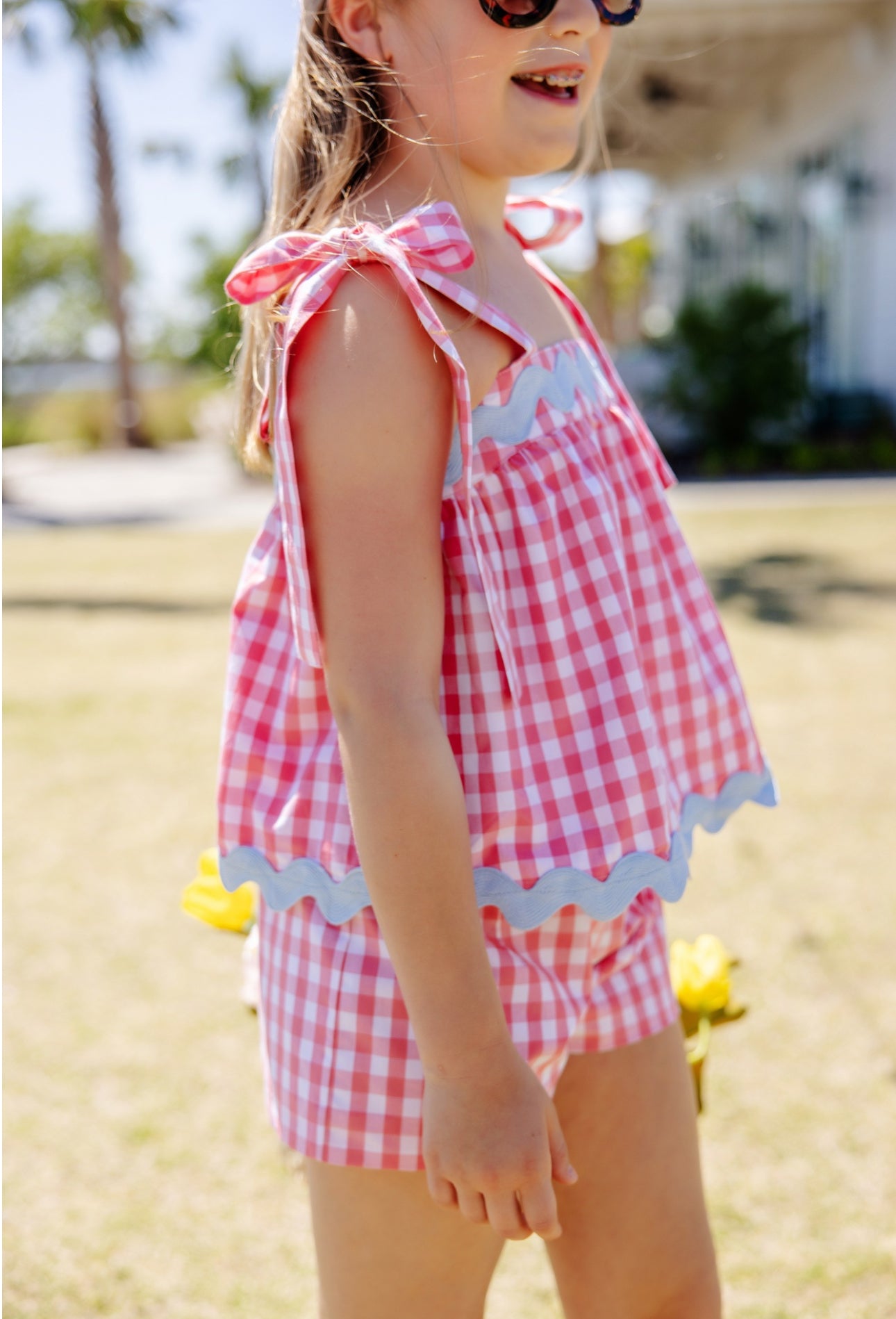 Tyler Tie Top- Parrot Cay Coral Check/Beale Street Blue